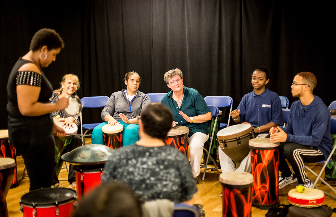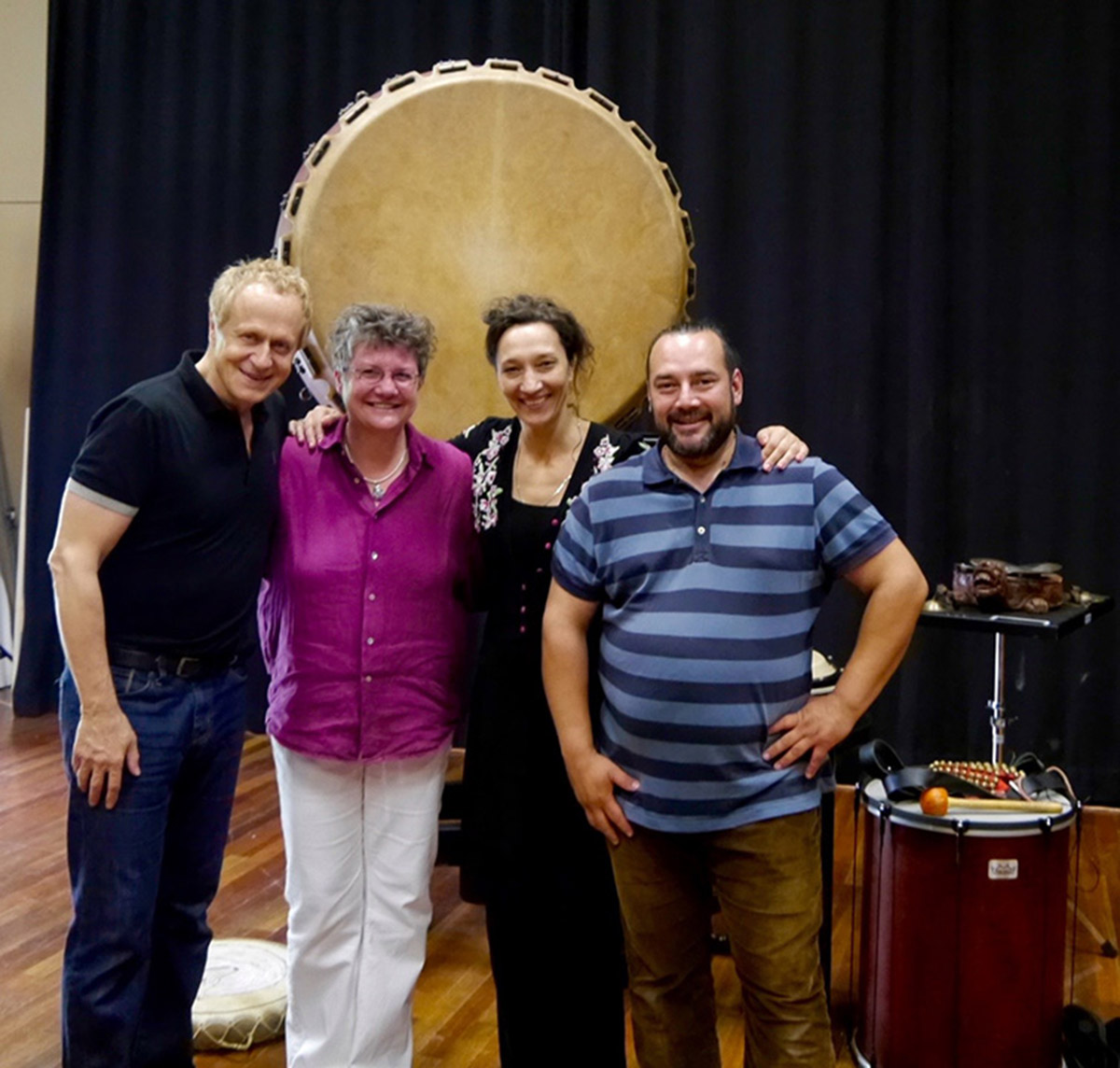 Ray Watters, Nellie Hill, Jim Boneo; Drum Circle Mentor-Training Scottland